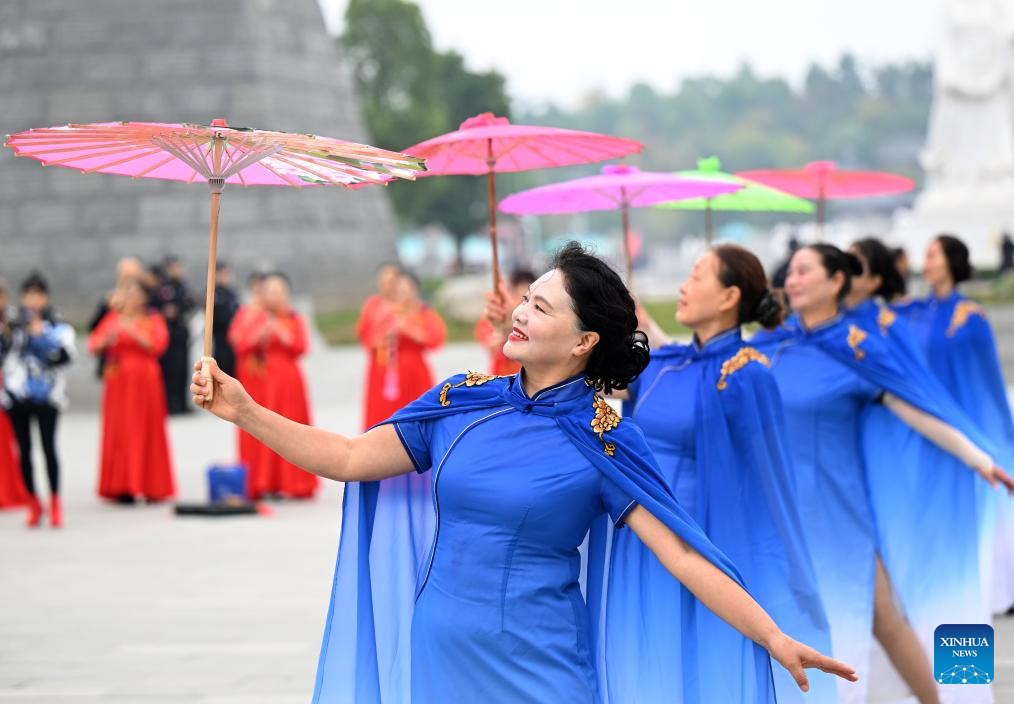 A model team formed by senior enthusiasts performs during an event celebrating Chongyang Festival in Xiping County, central China's Henan Province, Oct. 29, 2025. A series of celebration activities were held across the country to mark Chongyang Festival, which falls on Oct. 29 this year. Also known as China's Seniors' Day, it honors the country's traditional virtues of filial piety and family love. (Xinhua/Li Jianan)