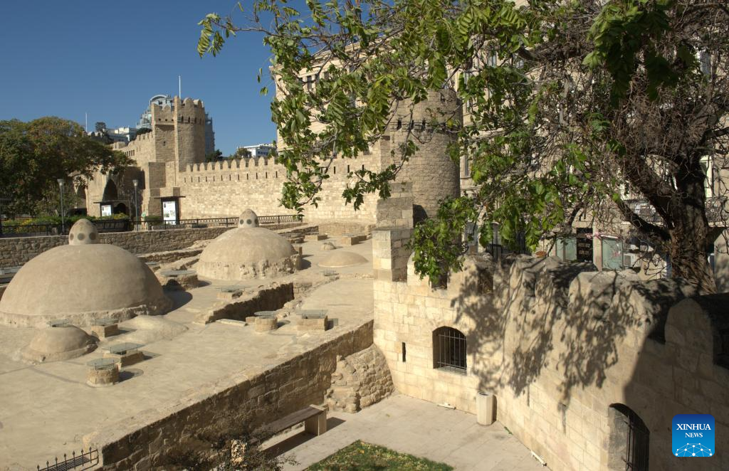 This photo taken on Oct. 28, 2025 shows a view of Baku's Old City, Azerbaijan. The Old City, the historical core of Baku, is a UNESCO World Heritage Site. (Xinhua/Chen Junfeng)