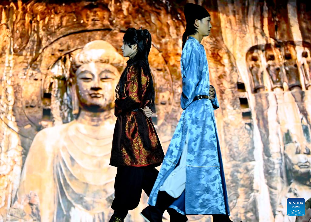 Models present creations at a fashion show held at Luoyi ancient city in Luoyang, central China's Henan Province, Oct. 29, 2025. (Xinhua/Hao Yuan)