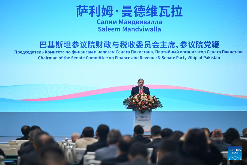 Saleem Mandviwalla, chairman of the Senate Committee on Finance and Revenue & Senate Party Whip of Pakistan, addresses the opening ceremony of the China (Kashgar) - Central and South Asia Forum on the Rule of Law (2025) in Kashgar, northwest China's Xinjiang Uygur Autonomous Region, Oct. 30, 2025. The forum kicked off here on Thursday. (Xinhua/Ding Lei)