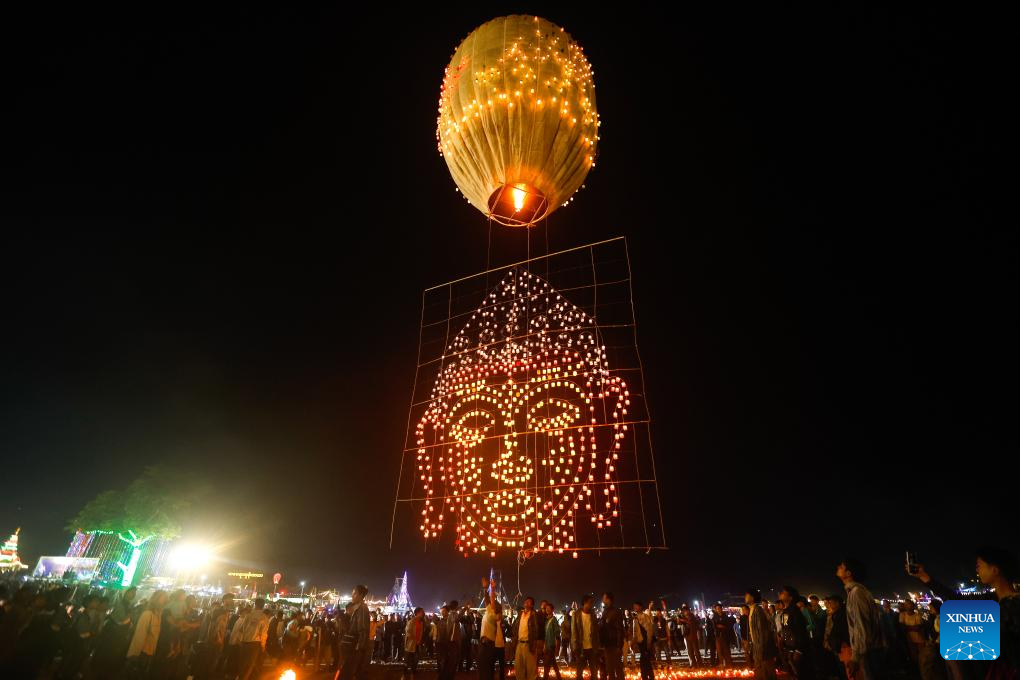 TAUNGGYI, Myanmar, Oct. 31 (Xinhua) -- Under the vast blue sky of Taunggyi in Myanmar's Shan state, thousands of spectators gathered Thursday night to witness one of Myanmar's most spectacular events, the Taunggyi Hot-Air Balloon Festival.