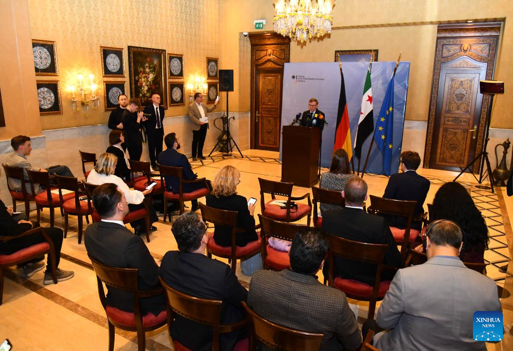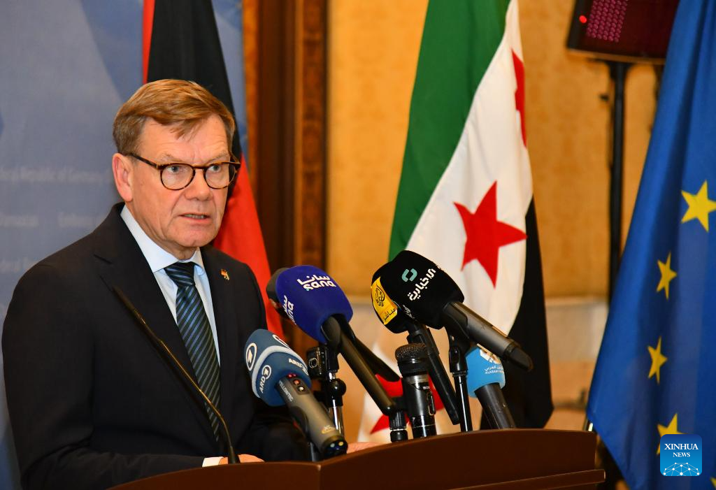 DAMASCUS, Oct. 30 (Xinhua) -- Visiting German Foreign Minister Johann Wadephul met here on Thursday with Syrian interim leader Ahmed al-Sharaa and foreign affairs chief Asaad Hassan al-Shibani, and reaffirmed Germany's commitment to supporting Syria's political and economic transition.