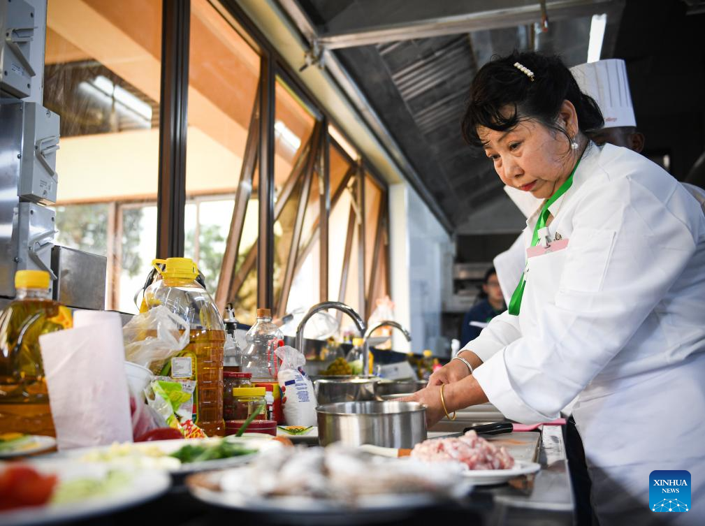 A contestant prepares a dish during the 2025 Africa Championship of Chinese Cuisine held in Nairobi, Kenya, Oct. 30, 2025. The 2025 Africa Championship of Chinese Cuisine, the first of its kind on the continent, was held Thursday in the Kenyan capital Nairobi, highlighting the deepening cultural exchanges between China and Kenya. (Xinhua/Li Yahui)