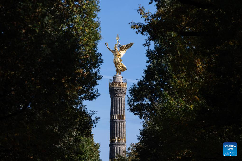 The Berlin Victory Column is pictured in Berlin, Germany, Oct. 29, 2025. Germany's gross domestic product (GDP) was flat in Q3 compared to the previous three months, provisional data from the Federal Statistical Office (Destatis) showed. (Xinhua/Zhang Haofu)