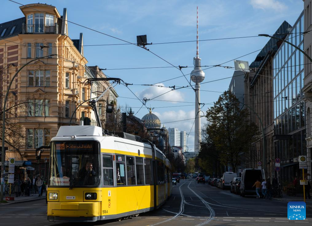 This photo taken on Oct. 29, 2025 shows a street view in Berlin, Germany. Germany's gross domestic product (GDP) was flat in Q3 compared to the previous three months, provisional data from the Federal Statistical Office (Destatis) showed. (Xinhua/Zhang Haofu)