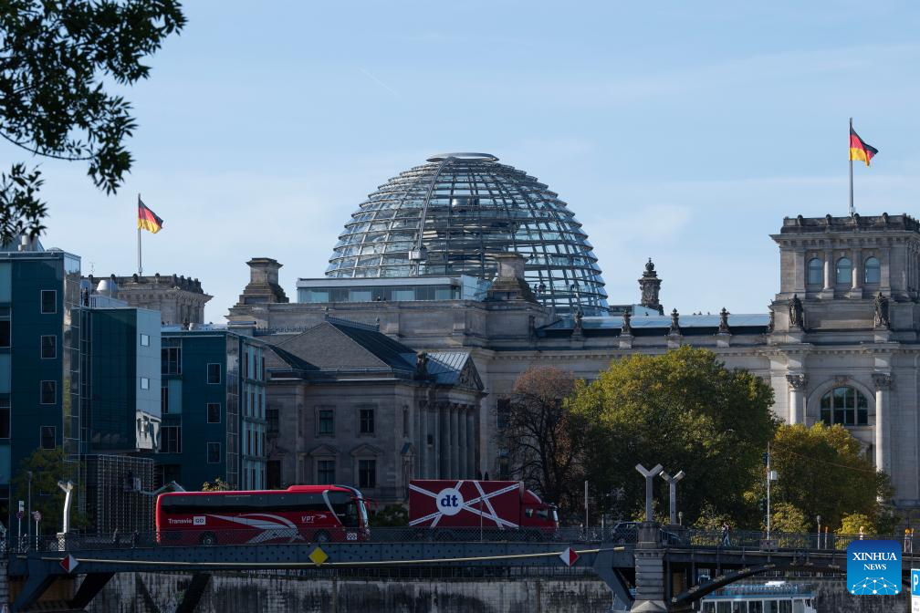 The Reichstag building is pictured in Berlin, Germany, Oct. 29, 2025. Germany's gross domestic product (GDP) was flat in Q3 compared to the previous three months, provisional data from the Federal Statistical Office (Destatis) showed. (Xinhua/Zhang Haofu)