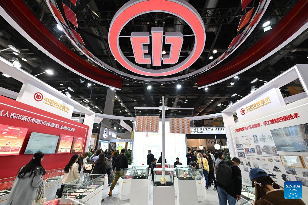 People visit the booth of China Banknote Printing and Minting during the Beijing International Coin Exposition 2025 at the China National Convention Center in Beijing, capital of China, Oct. 31, 2025. (Xinhua/Li Xin)
