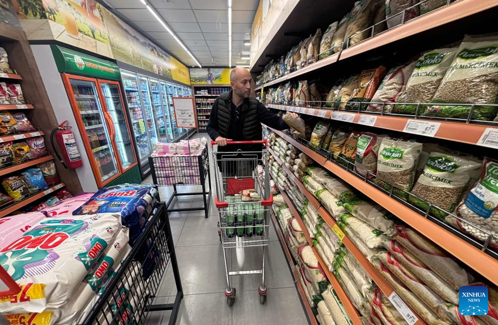 A man shops at a supermarket in Ankara, Türkiye, on Nov. 3, 2025. Türkiye's annual inflation slightly eased to 32.87 percent in October, down from 33.29 percent in September, official data showed Monday.