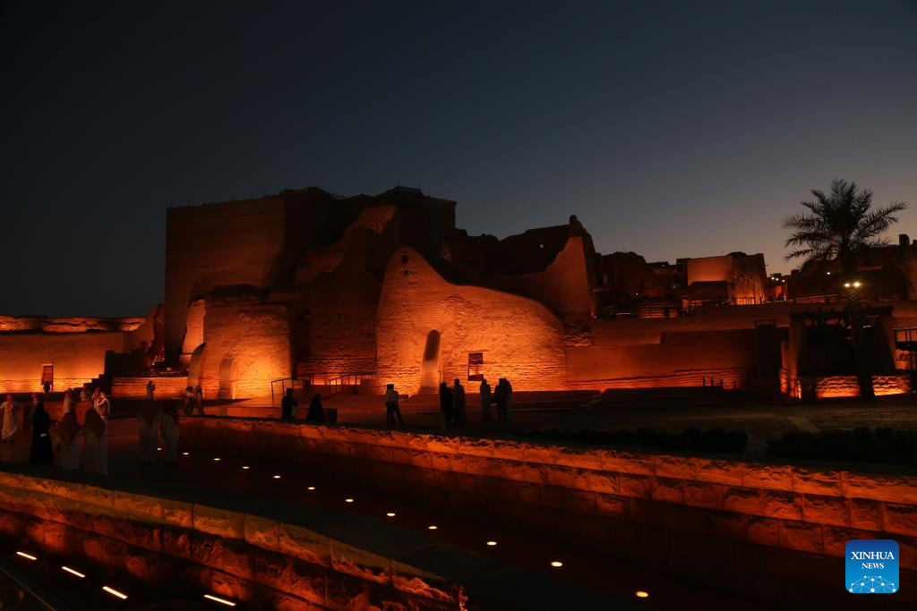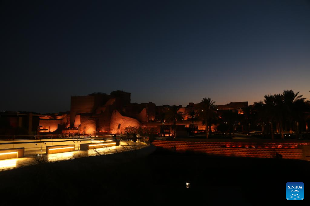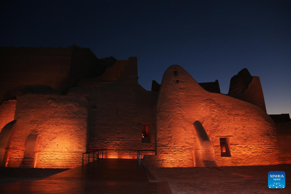 This photo taken on Oct. 29, 2025 shows the night view of Diriyah in Riyadh, Saudi Arabia. Located a short drive from Riyadh's city center, the Diriyah holds historical significance as the birthplace of the Kingdom of Saudi Arabia, dating back to 1727. (Xinhua/Sha Dati)