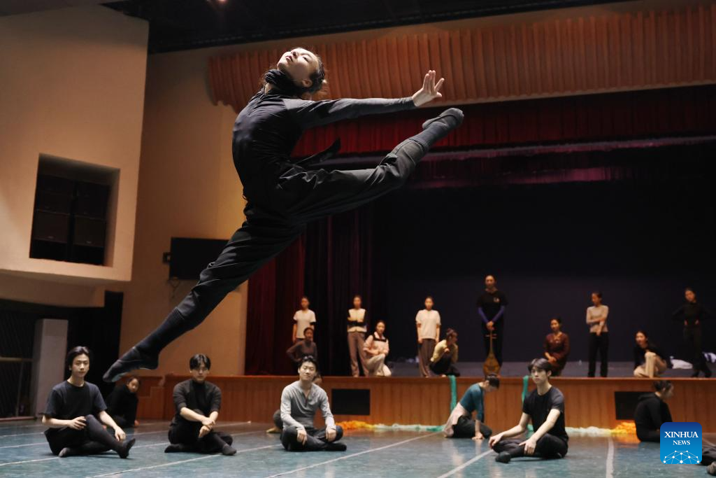 Dancers rehearse the dance drama "Flower Rains Along Silk Road" in Lanzhou, northwest China's Gansu Province, Nov. 3, 2025.(Xinhua/Chen Bin)