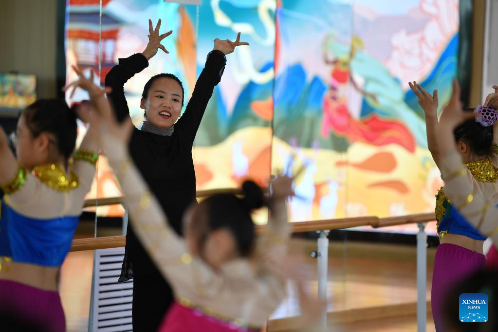 The introduction of Dunhuang dance to local educational institutions also fuels the boom. The unique dance genre has been passed down among young generations, promoting it to a wider audience so that more people will learn about the beauty of Dunhuang. (Xinhua/Chen Bin)
