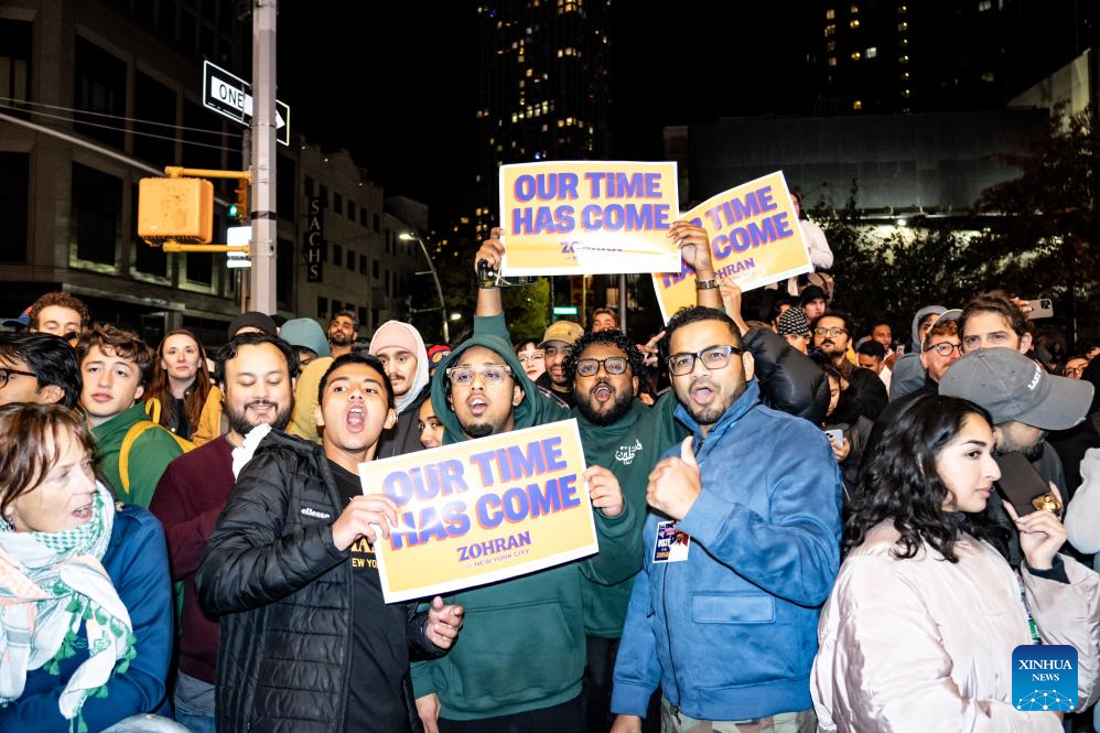 NEW YORK, Nov. 4 (Xinhua) -- Democratic candidate Zohran Mamdani won the New York City mayoral election Tuesday night, becoming the first muslim mayor of the most populous city in the United States.