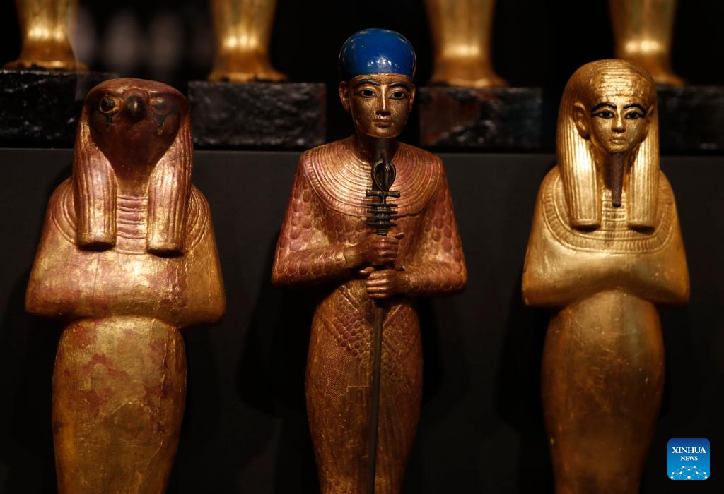This photo taken on Nov. 4, 2025 shows exhibits at the King Tutankhamun exhibition hall of the Grand Egyptian Museum in Giza, Egypt. The Grand Egyptian Museum (GEM) , the world's largest museum dedicated to a single civilization, opened to the public on Tuesday. (Xinhua/Ahmed Gomaa)