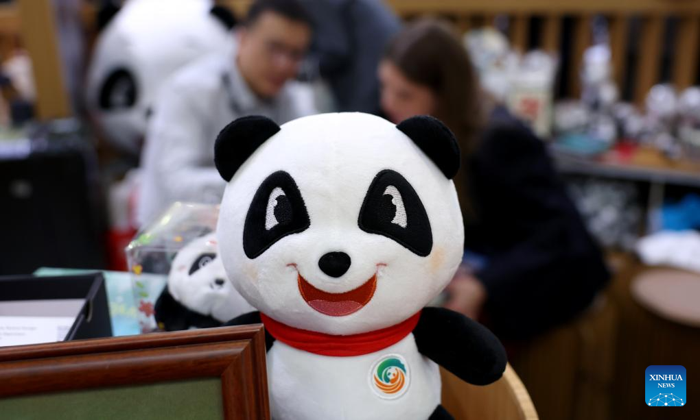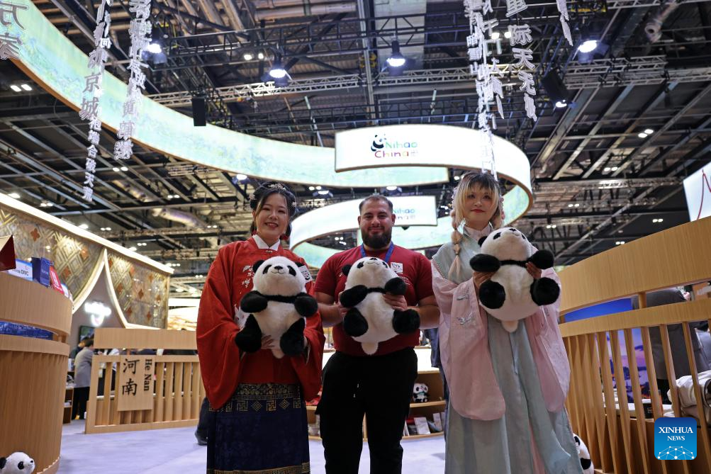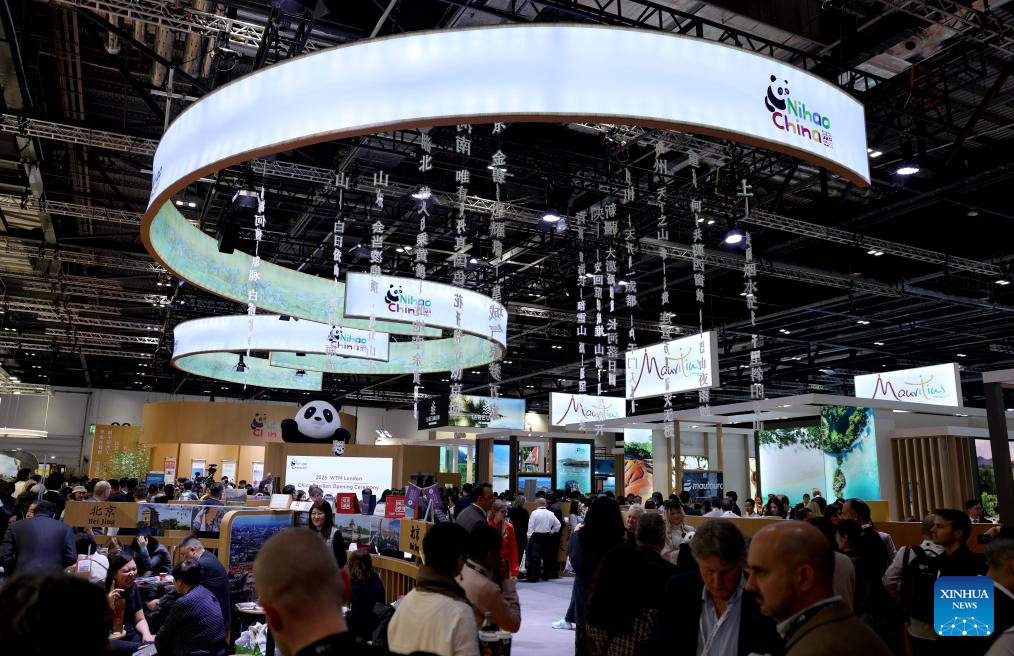 People visit the China pavilion of the World Travel Market (WTM) London 2025 in London, Britain, Nov. 4, 2025. The WTM London 2025 opened on Tuesday, with the China pavilion drawing attention for its abundant tourism resources and cultural appeal. (Xinhua/Li Ying)