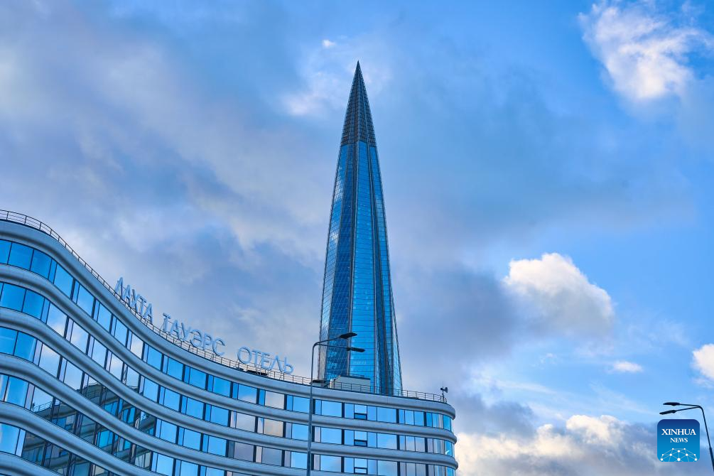 This photo taken on Nov. 4, 2025 shows the Lakhta Center in St. Petersburg, Russia. The Lakhta Center is located in St. Petersburg, Russia. With a height of 462 meters, it ranks as the tallest building in Russia. (Photo by Guo Feizhou/Xinhua)