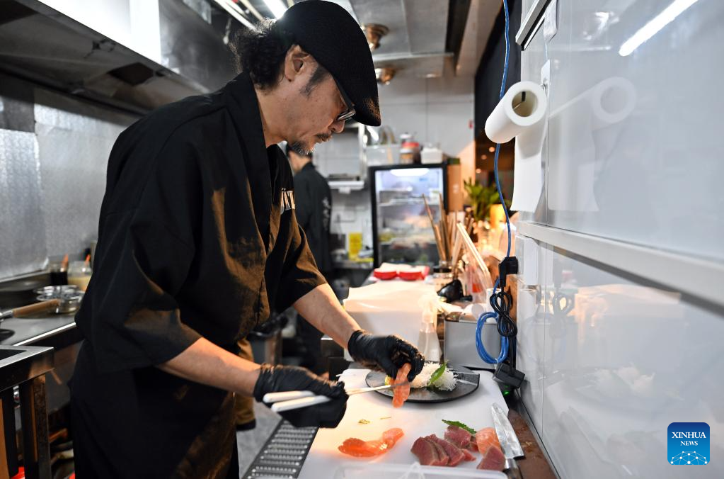 Japanese restaurateur Kato Tetsuya works at his bistro in Haikou, capital of south China's Hainan Province, Oct. 24, 2025. (Xinhua/Guo Cheng)