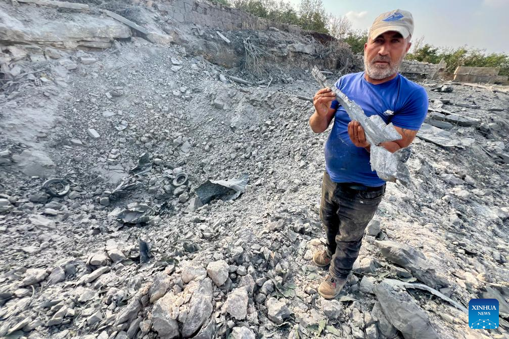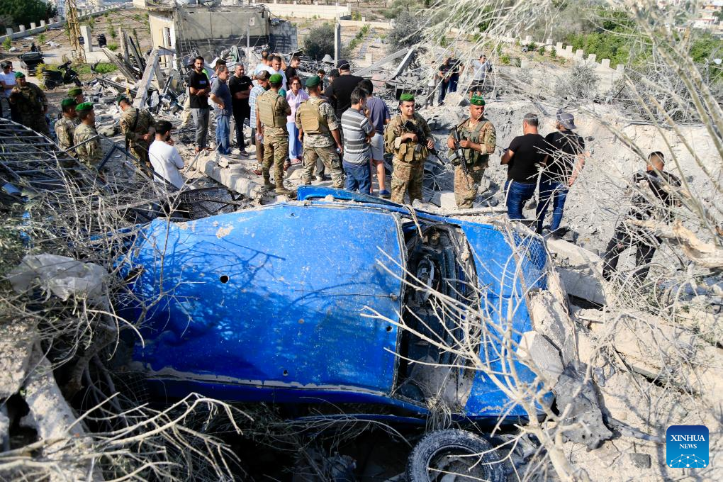 According to the NNA, Israel carried out an air raid on the area between the Toura and the town of Abbassiyeh, in the Tyre district. (Photo by Ali Hashisho/Xinhua)