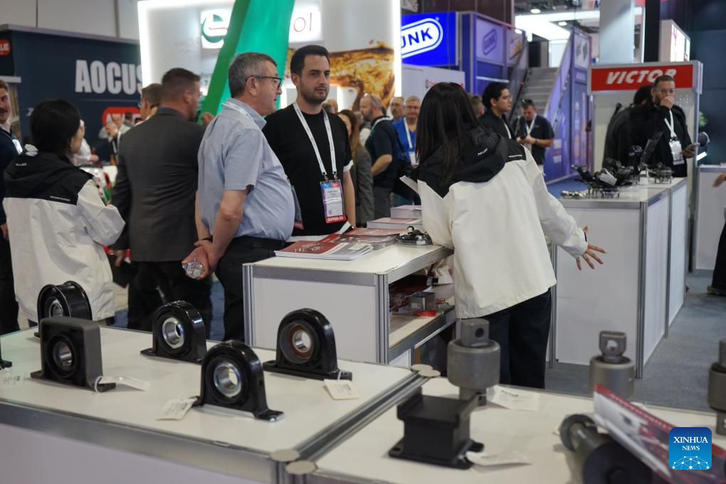 The Automotive Aftermarket Products Expo 2025, held in Las Vegas from Tuesday to Thursday, features more than 2,700 global exhibitors across 5,500 booths and is expected to attract over 45,000 attendees from more than 120 countries, said the organizers. (Photo by Zeng Hui/Xinhua)