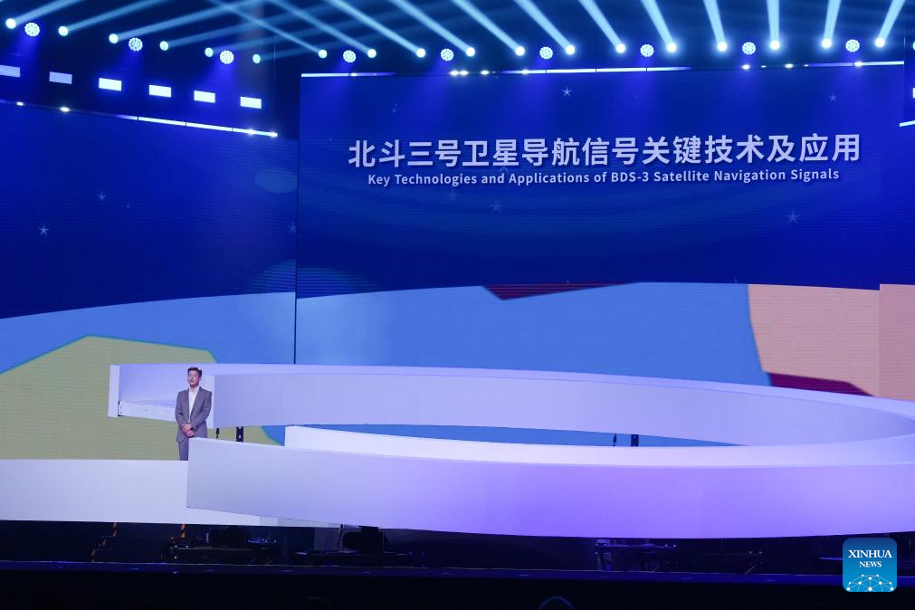 This photo taken on Nov. 6, 2025 shows the launch of the key technologies and applications of BDS-3 satellite navigation signals in Wuzhen, east China's Zhejiang Province. A total of 17 international projects on Thursday received World Internet Conference (WIC) 2025 Awards for Pioneering Science and Technology in east China's Zhejiang Province, celebrating their breakthroughs in cutting-edge fields.(Xinhua/Huang Zongzhi)