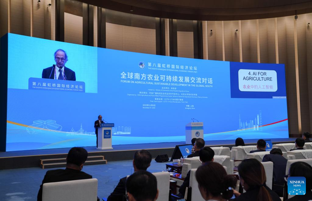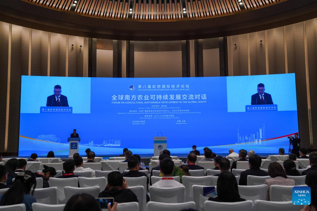 The Forum on Agricultural Sustainable Development in the Global South is held during the 8th Hongqiao International Economic Forum at the National Exhibition and Convention Center (Shanghai) in Shanghai, east China, Nov. 6, 2025. (Xinhua/Fan Yuqing)
