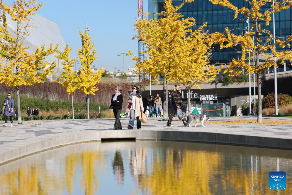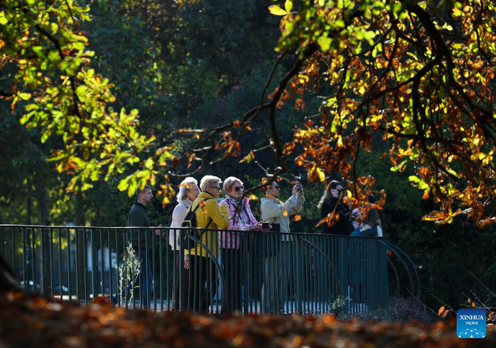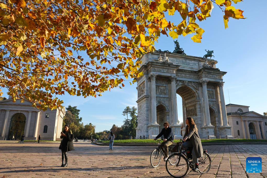 People visit the Sempione Park in Milan, Italy, Nov. 5, 2025. (Xinhua/Li Jing)