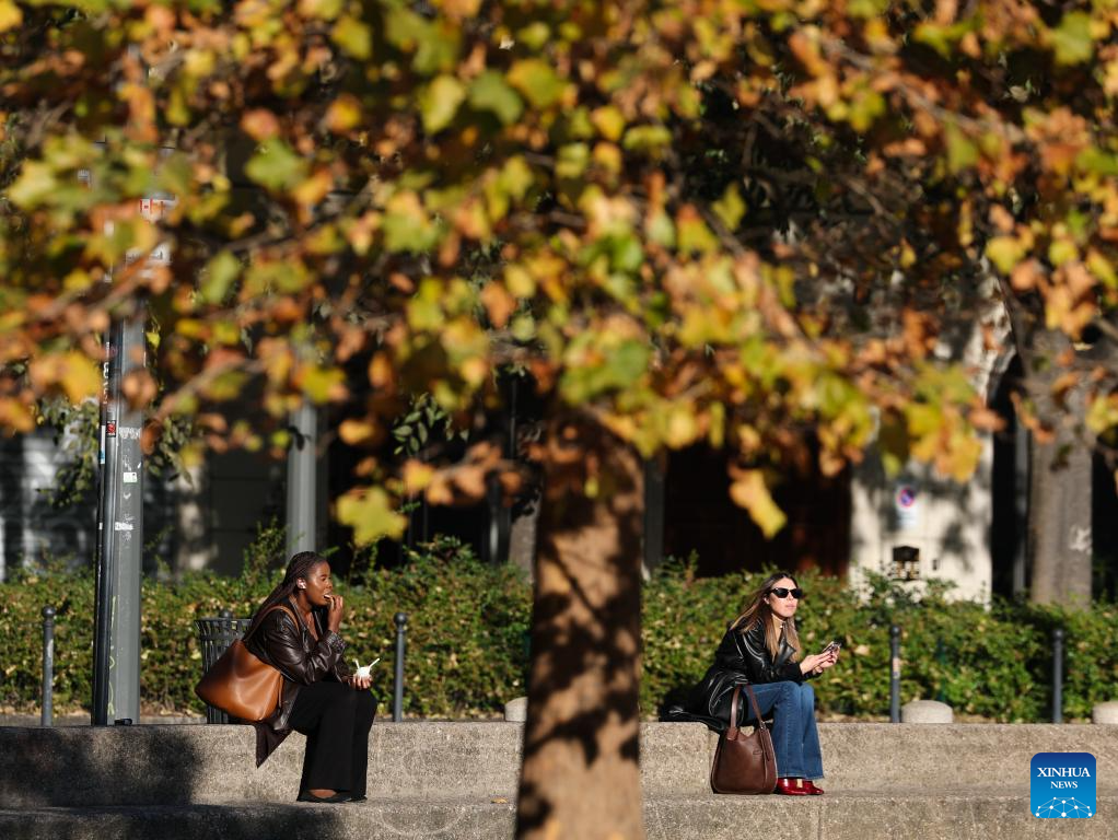 People rest at Piazza Sempione in Milan, Italy, Nov. 5, 2025. (Xinhua/Li Jing)