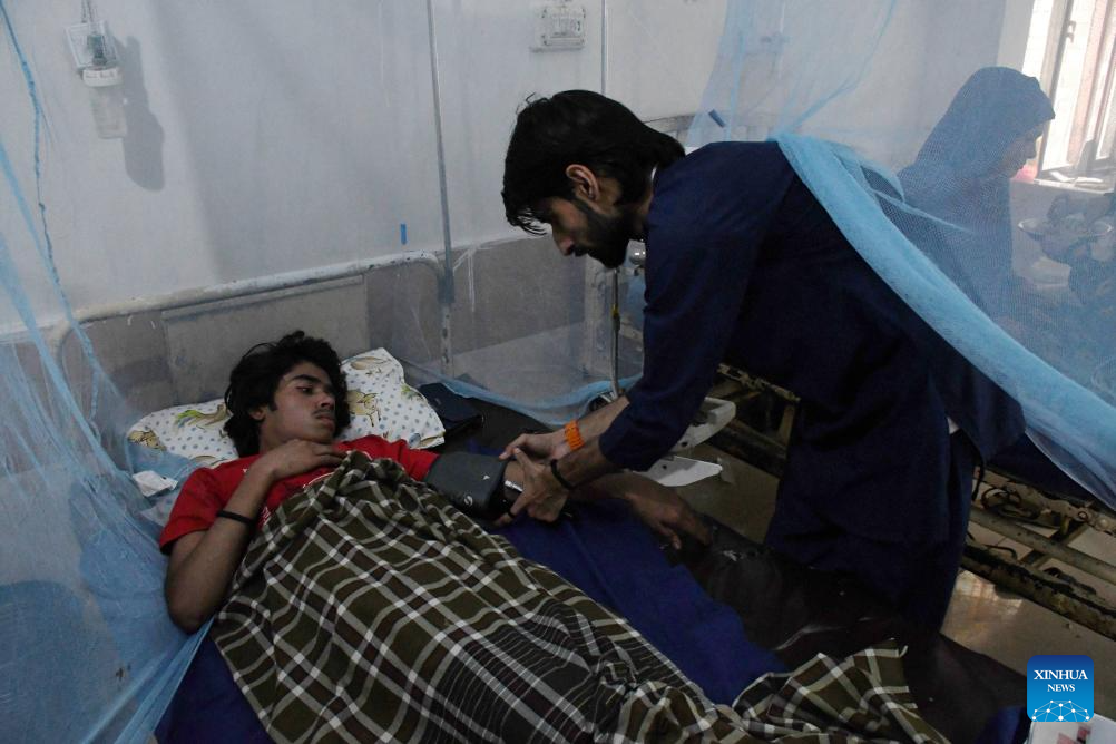 A patient infected with dengue fever is treated at a hospital in southern Pakistan's Hyderabad on Nov. 6, 2025. At least 21 people have died from dengue fever in Pakistan's southern Sindh province so far this year, as health authorities battle a sharp rise in infections across the region, officials said on Thursday. (Str/Xinhua)