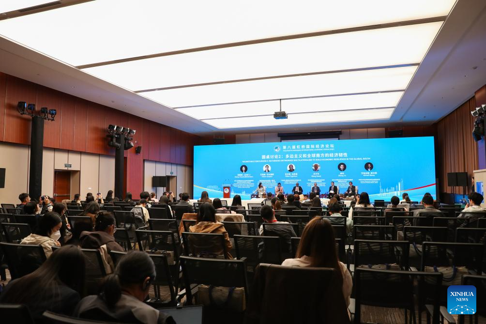 A parallel session titled "Building Multilateralism to Enhance Economic Resilience of the Global South" is held during the 8th Hongqiao International Economic Forum in Shanghai, east China, Nov. 5, 2025. (Xinhua/Wang Jingqiang)