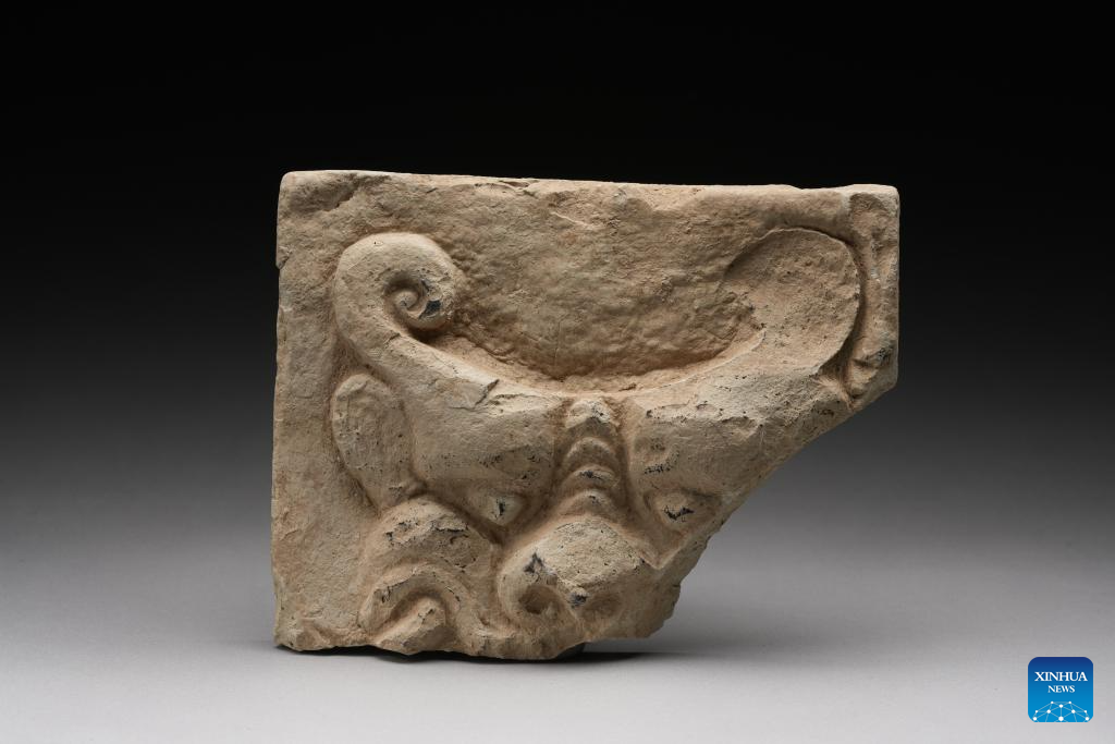 This file photo shows a piece of architectural component discovered within the ruins of the Tongyifang, a residential compound for high-ranking officials and dignitaries in the renowned Chang'an City during the Sui (581-618) and Tang (618-907) dynasties, in Xi'an, northwest China's Shaanxi Province. Archaeologists have uncovered 25 relic sites in Xi'an, the capital city of northwest China's Shaanxi Province, with finds including ash pits and wells dating back to the Sui and Tang dynasties, the Shaanxi Academy of Archaeology announced on Thursday. (Shaanxi Academy of Archaeology/Handout via Xinhua)