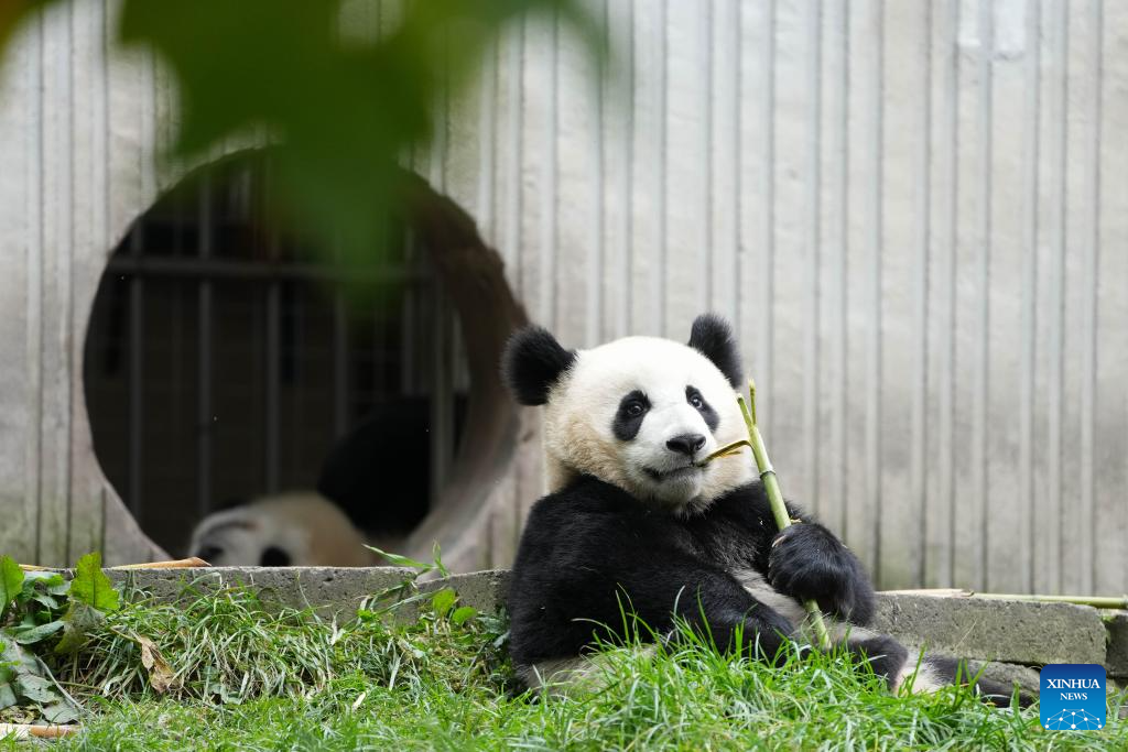 A giant panda eats bamboos at Chengdu Research Base of Giant Panda Breeding in Chengdu, southwest China's Sichuan Province, Nov. 6, 2025. (Xinhua/Xu Bingjie)