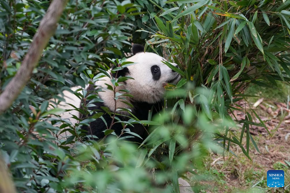 A giant panda is pictured at Chengdu Research Base of Giant Panda Breeding in Chengdu, southwest China's Sichuan Province, Oct. 30, 2025. (Xinhua/Xu Bingjie)