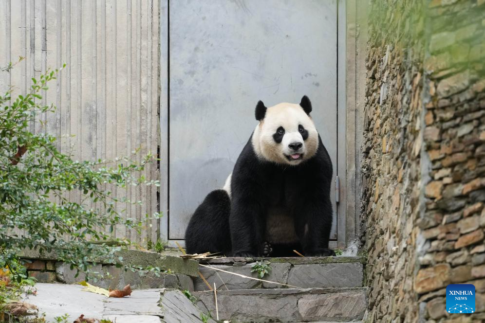 Giant panda "Xiao Qi Ji" is pictured at the Shenshuping giant panda base of Wolong National Nature Reserve in southwest China's Sichuan Province, Nov. 6, 2025. (Xinhua/Xu Bingjie)