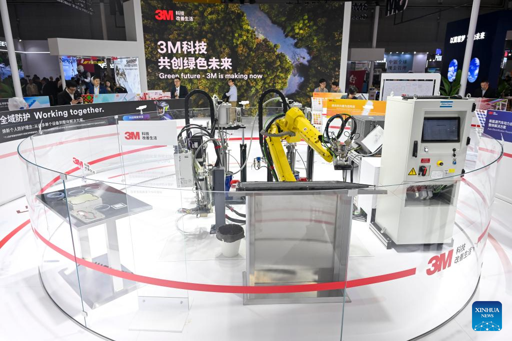 This photo taken on Nov. 7, 2025 shows the booth of 3M, an eight-year attendee of the China International Import Expo (CIIE), during the eighth CIIE in east China's Shanghai. The eighth CIIE, which opened in Shanghai on Wednesday and will last till Nov. 10, has attracted 4,108 overseas exhibitors from 155 countries, regions and international organizations.