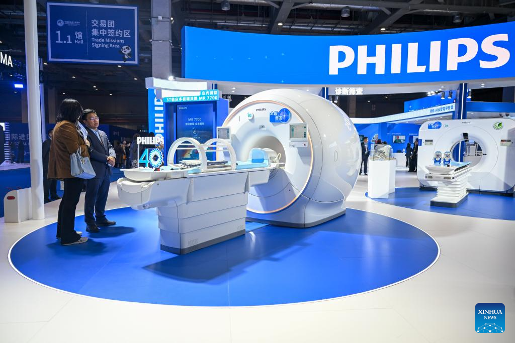 People visit the booth of Philips, an eight-year attendee of the China International Import Expo (CIIE), during the eighth CIIE in east China's Shanghai, Nov. 7, 2025. The eighth CIIE, which opened in Shanghai on Wednesday and will last till Nov. 10, has attracted 4,108 overseas exhibitors from 155 countries, regions and international organizations.
