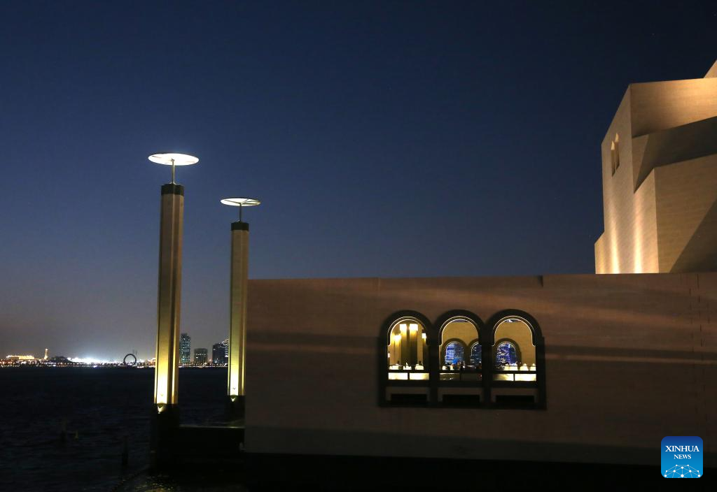 This photo taken on Nov. 3, 2025 shows a night view of the Museum of Islamic Art in Doha, Qatar. (Xinhua/Shadati)