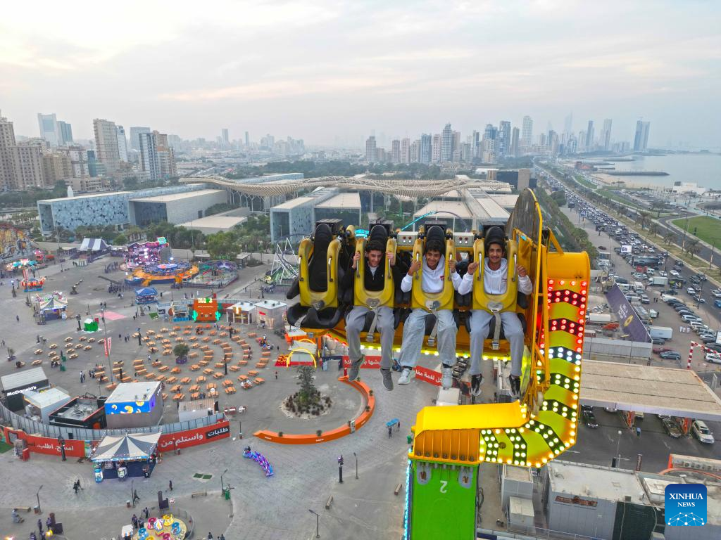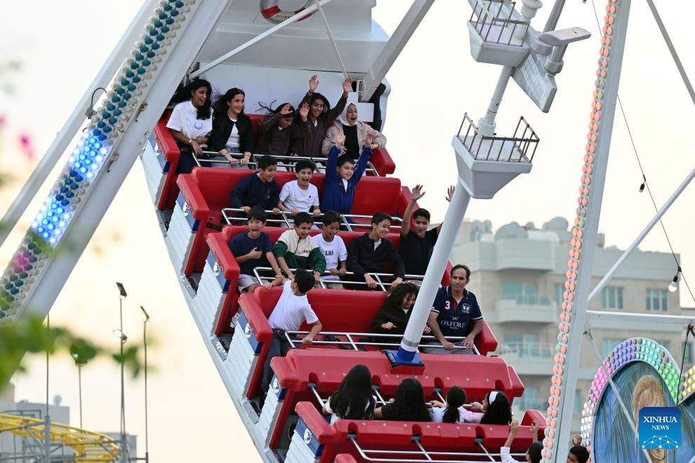 Visitors enjoy their time at "Winter Wonderland Kuwait" in Hawalli Governorate, Kuwait, Nov. 6, 2025. "Winter Wonderland Kuwait", one of the largest entertainment projects in the country, opened its fourth season here on Thursday. (Photo by Asad/Xinhua)