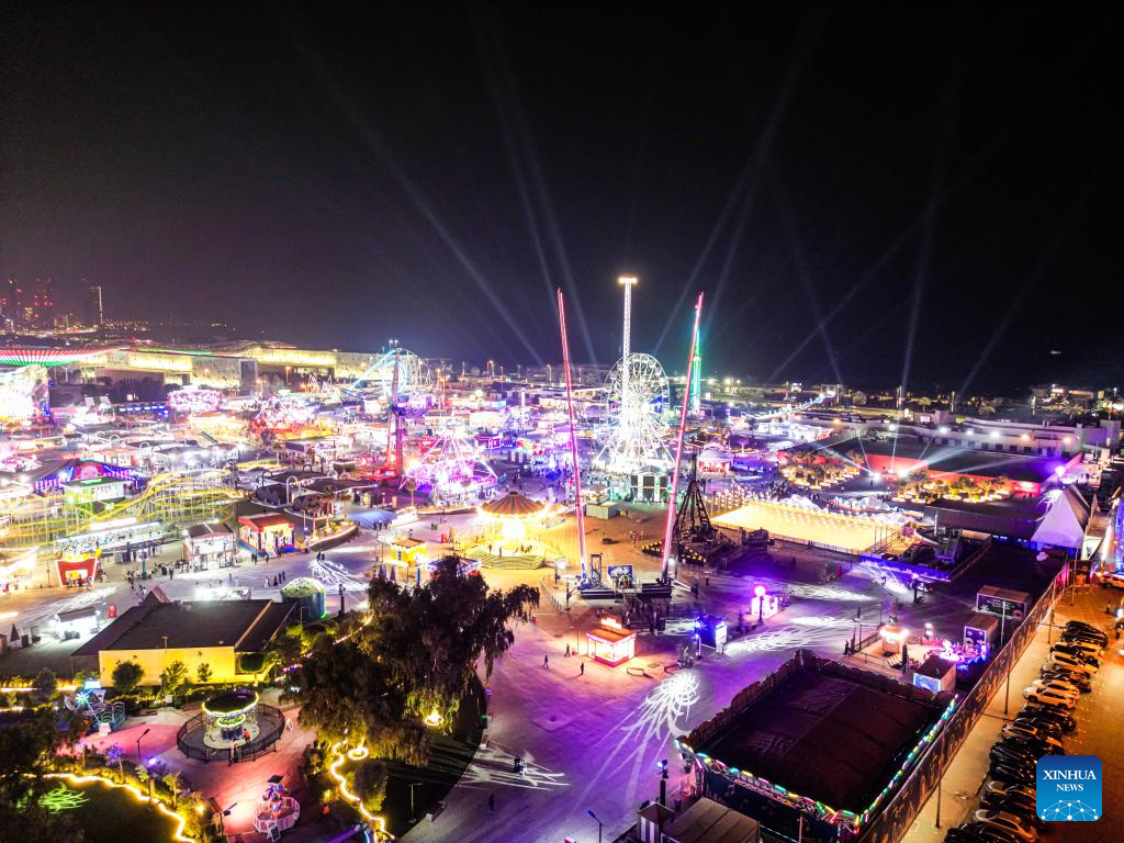 An aerial drone photo shows a view of the "Winter Wonderland Kuwait" in Hawalli Governorate, Kuwait, Nov. 6, 2025. "Winter Wonderland Kuwait", one of the largest entertainment projects in the country, opened its fourth season here on Thursday. (Photo by Asad/Xinhua)