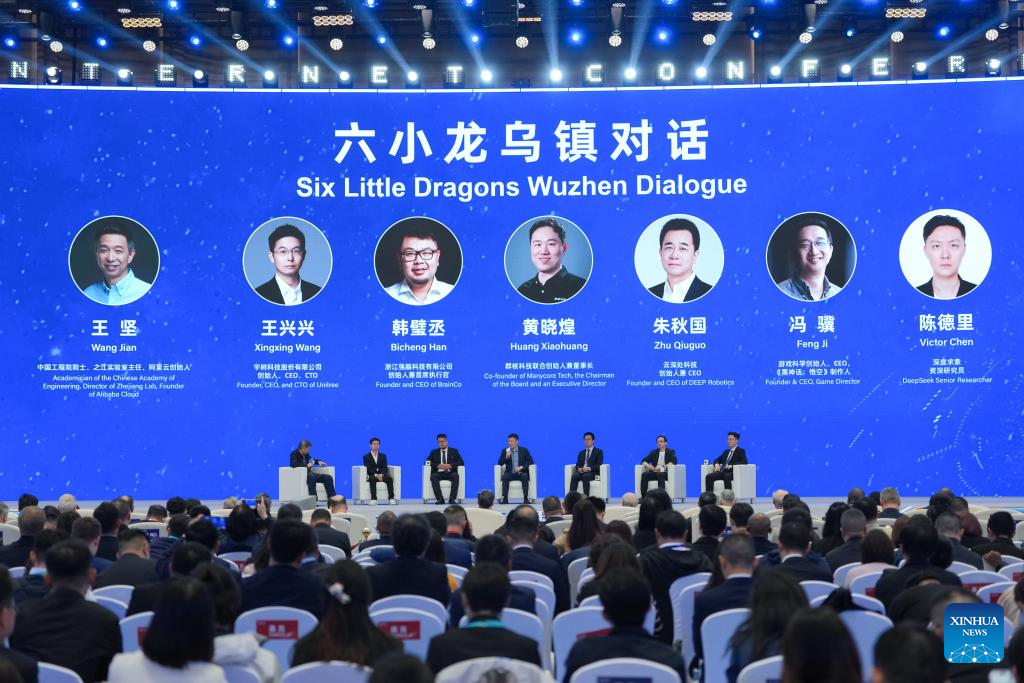 The "Six Little Dragons" Wuzhen Dialogue is held during the 2025 World Internet Conference (WIC) Wuzhen Summit in Wuzhen, east China's Zhejiang Province, Nov. 7, 2025. (Xinhua/Huang Zongzhi)