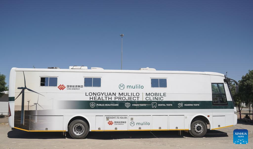 This photo taken on Oct. 22, 2025 shows a mobile clinic bus purchased by Longyuan South Africa Renewables Ltd. in De Aar, Northern Cape, South Africa.(Xinhua/Han Xu)