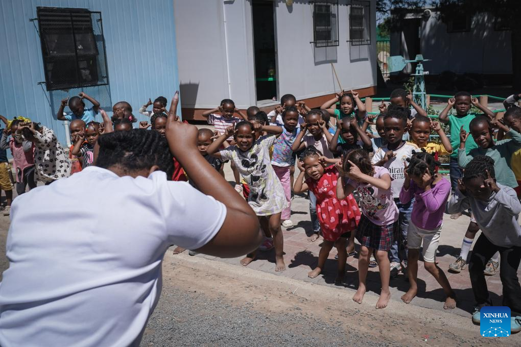 A teacher interacts with children at an early childhood education center operated by Longyuan South Africa Renewables Ltd. in De Aar, Northern Cape, South Africa, Oct. 22, 2025.(Xinhua/Han Xu)