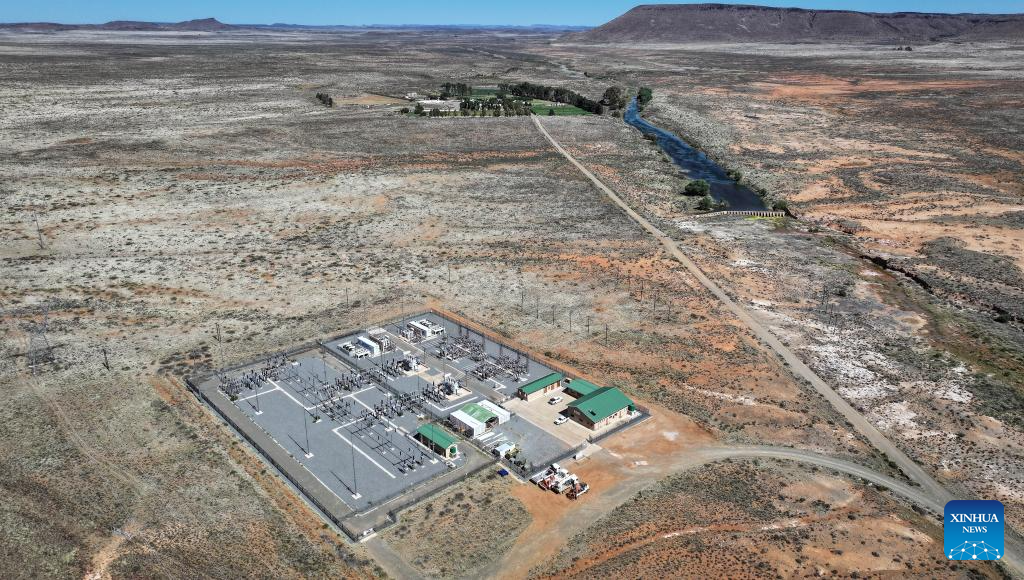 An aerial drone photo taken on Oct. 22, 2025 shows a substation of De Aar Wind Power Project in De Aar, Northern Cape, South Africa. (Xinhua/Han Xu)