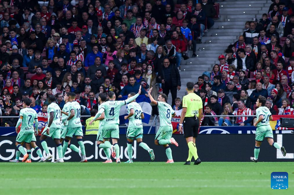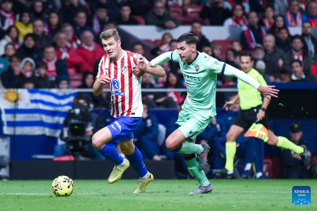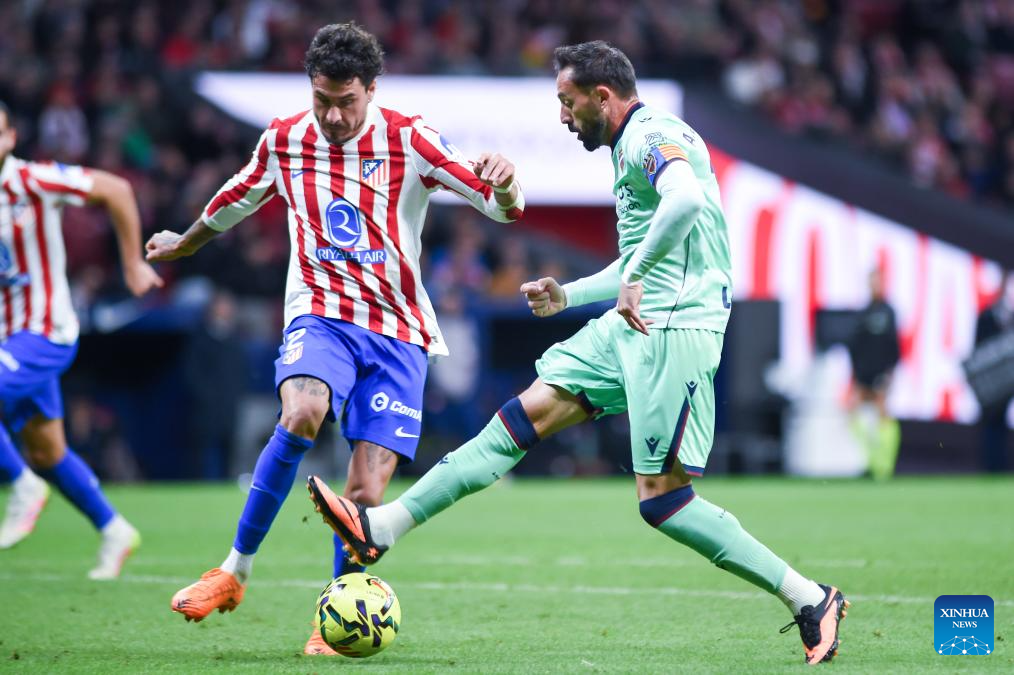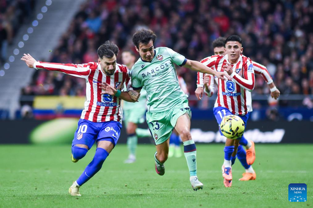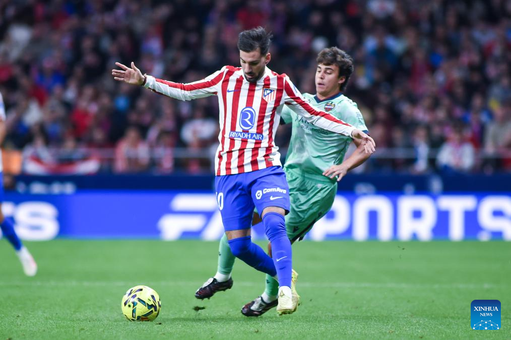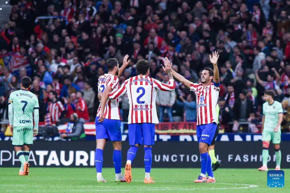 MADRID, Nov. 9 (Xinhua) -- Antoine Griezmann scored twice as Atletico Madrid was made to work hard for a 3-1 home win over Levante in La Liga on Saturday.
