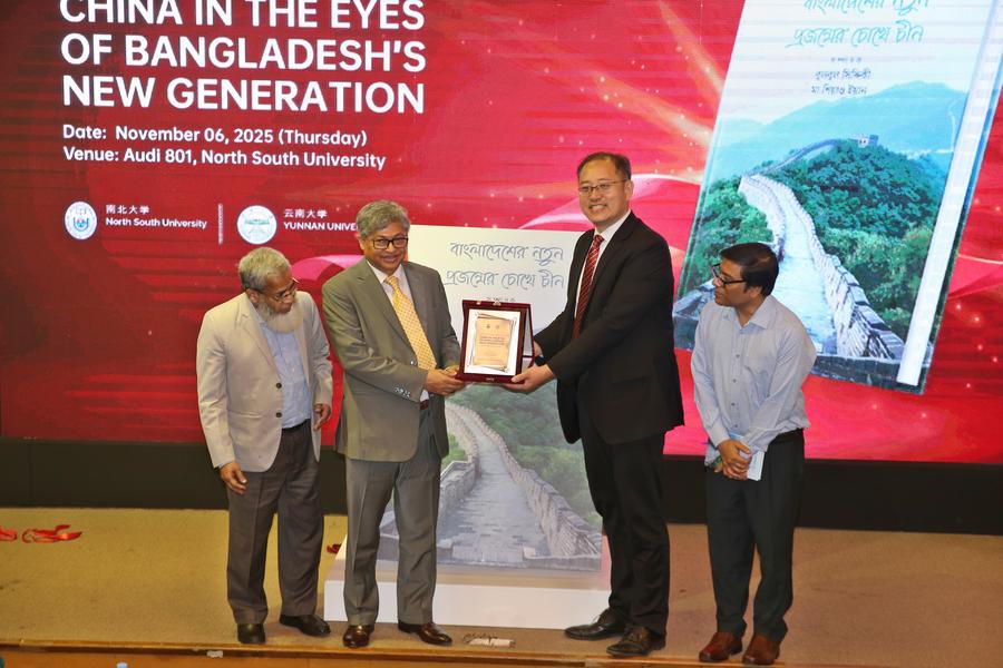 At the ceremony, it was unveiled by Professor Abdul Hannan Chowdhury, vice-chancellor of the NSU, alongside Mahbub Morshed, chief editor of the Bangladesh Sangbad Sangstha (BSS), the national news agency of Bangladesh, and Li Shaopeng, cultural counselor of the Chinese Embassy in Bangladesh.
