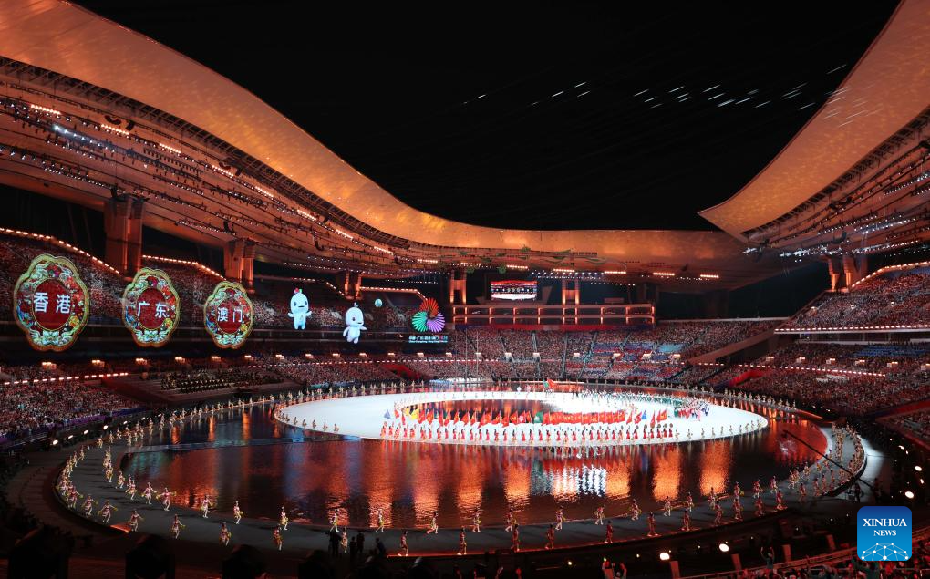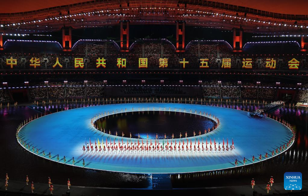 Photo taken on Nov. 9, 2025 shows the general view of the opening ceremony of China's 15th National Games in Guangzhou, south China's Guangdong Province. (Xinhua/Lu Hanxin)