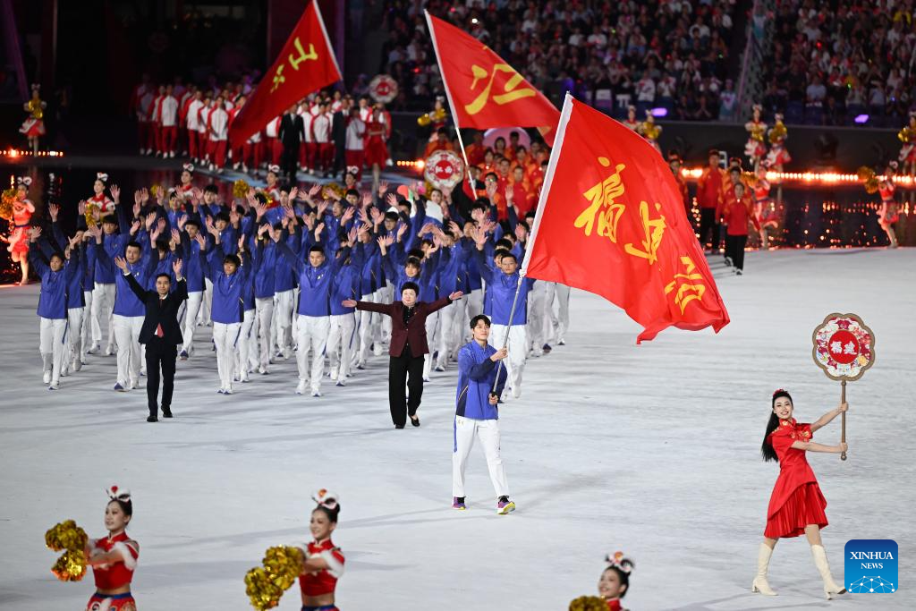 Members of Fujian delegation parade during the opening ceremony of China's 15th National Games in Guangzhou, south China's Guangdong Province, Nov. 9, 2025. (Xinhua/Deng Hua)