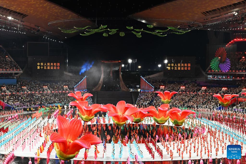 Artists perform during the opening ceremony of China's 15th National Games in Guangzhou, south China's Guangdong Province, Nov. 9, 2025. (Xinhua/Zhang Long)
