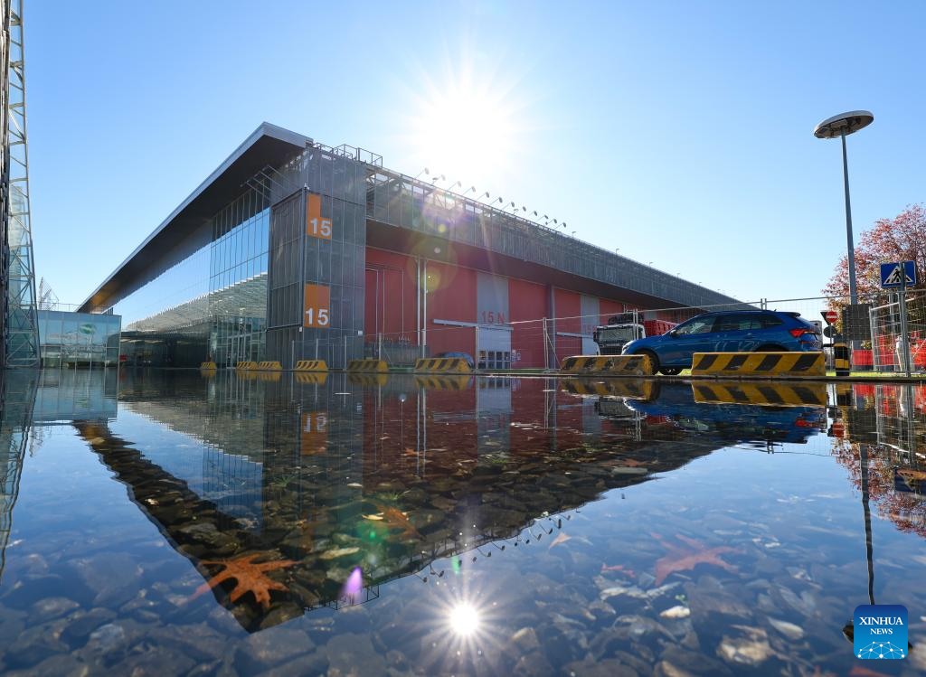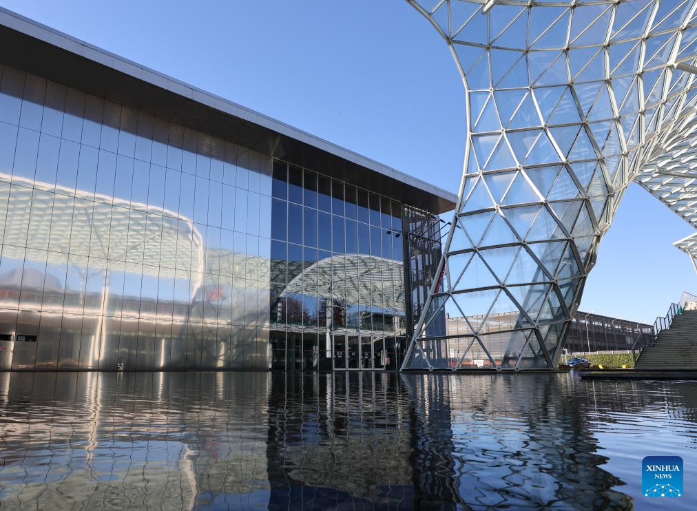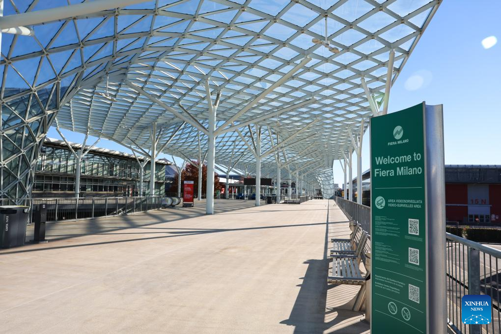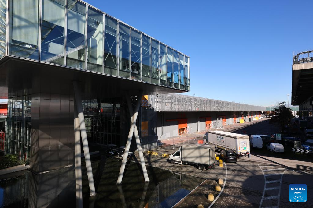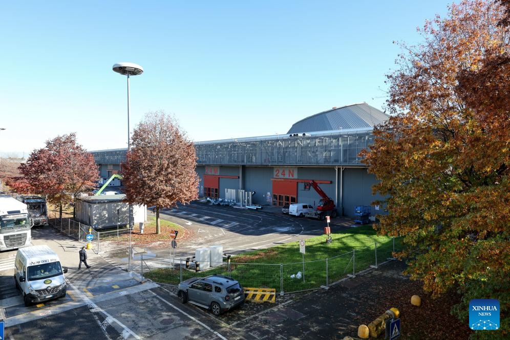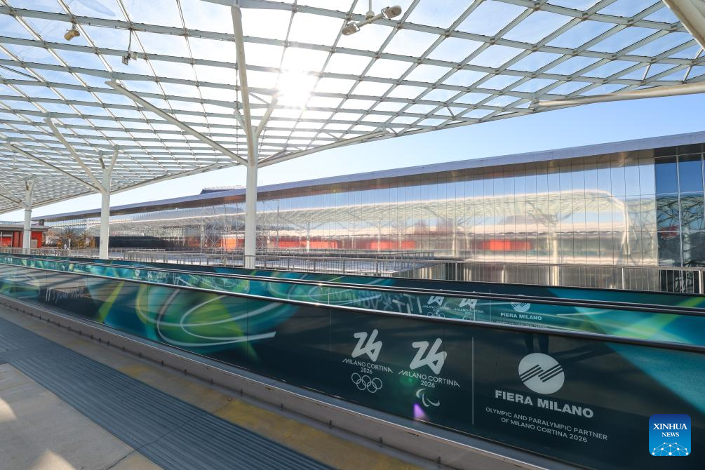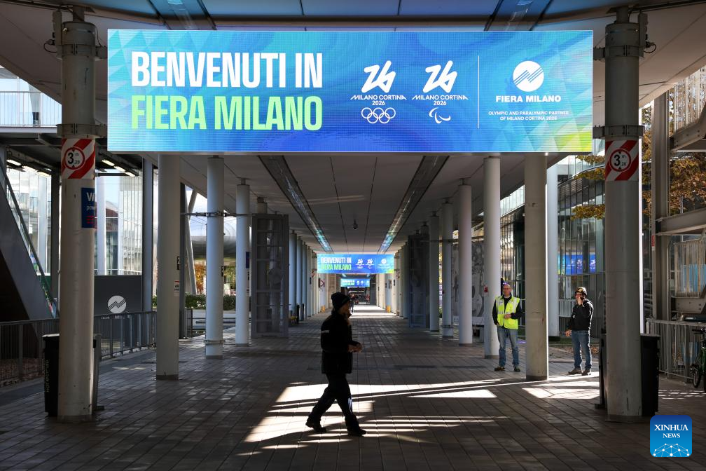 This photo taken on Nov. 3, 2025 shows the Fiera Milano Rho exhibition center in Milan, Italy. The Milan-Cortina 2026 Olympic Winter Games will open on February 6, 2026 at Milan's San Siro Stadium. (Xinhua/Li Jing)