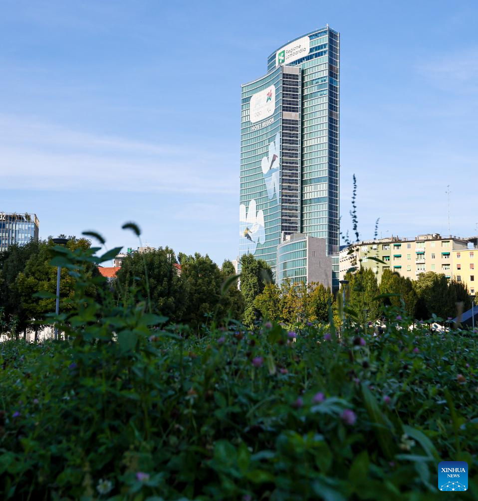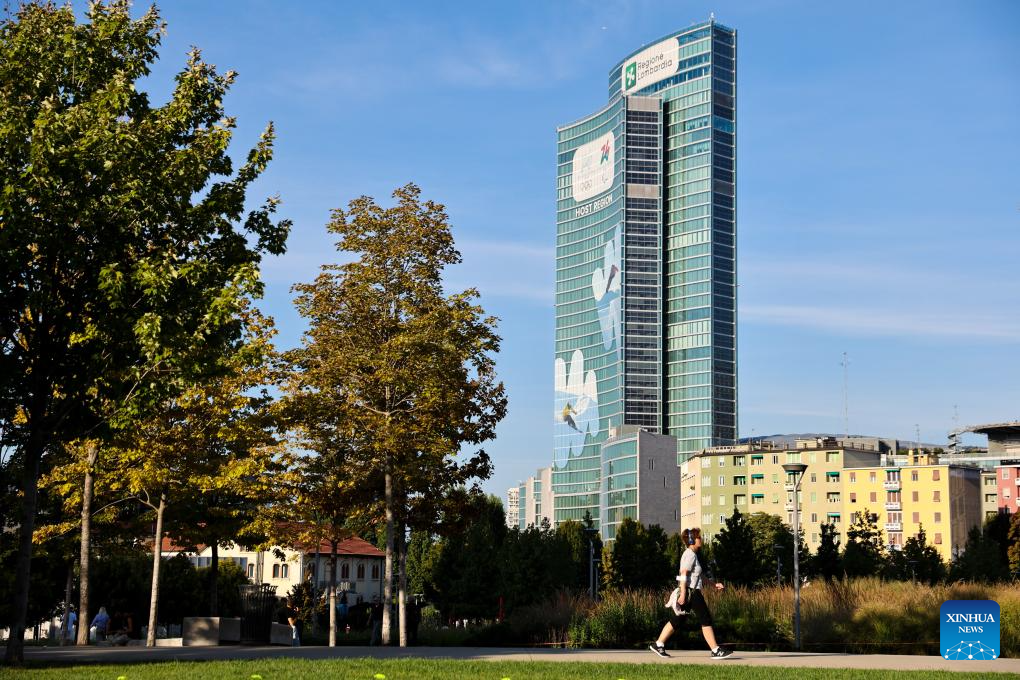 This photo taken on Sept. 17, 2025 shows the Lombardy Building in Milan, Italy. The Milan-Cortina 2026 Olympic Winter Games will open on February 6, 2026 at Milan's San Siro Stadium. (Xinhua/Li Jing)