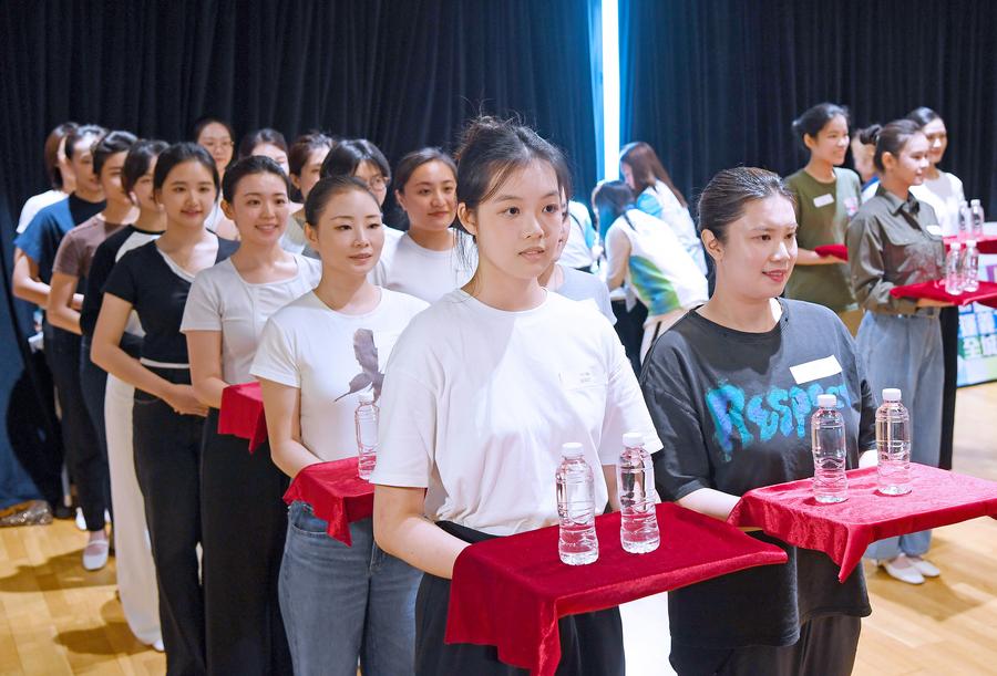 "The intensity is worth it," Wang said during a break, rubbing her sore arms where faint tray marks lingered. "To maintain a perfect smile, we practice holding chopsticks between our teeth. It's tiring, but seeing ourselves in the mirror, composed and focused, makes every drop of sweat meaningful."