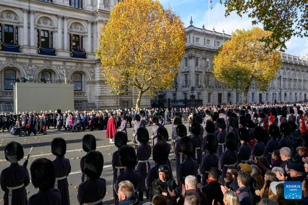 People attend the Remembrance Sunday ceremony in London, Britain, on Nov. 9, 2025. The Remembrance Sunday ceremony is an annual event to pay tribute to the war dead of Britain and the Commonwealth, which is held on the nearest Sunday to the anniversary of the end of World War I on Nov. 11, 1918. (Photo by Ray Tang/Xinhua)